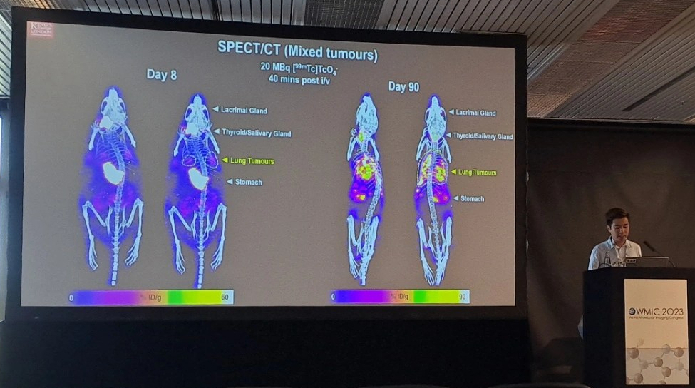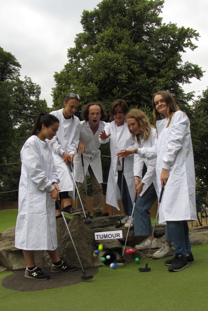 Our team trying to trace therapeutic cells to a nasty tumour near Central London on a typical British summer day.